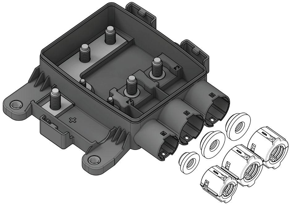 Box con 1 fusibile midi e 2 fusibili mega con coperchio (waterproof)
