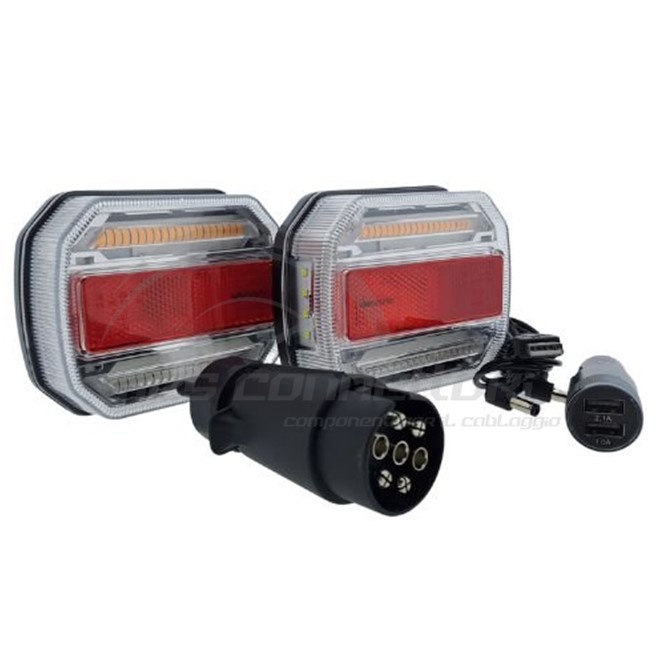 coppia fari led per rimorchio magnetici 12V wireless - 5 funzioni
