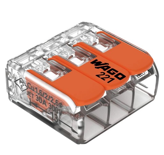 morsetto a pressione wago 3 vie per cavo con sez. 0.2-4 mmq