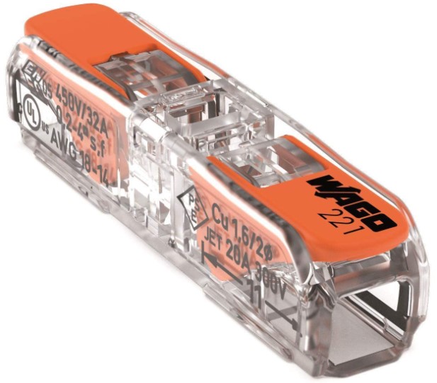 morsetto a pressione wago 2 vie per cavi con sez. 0.2-4 mmq