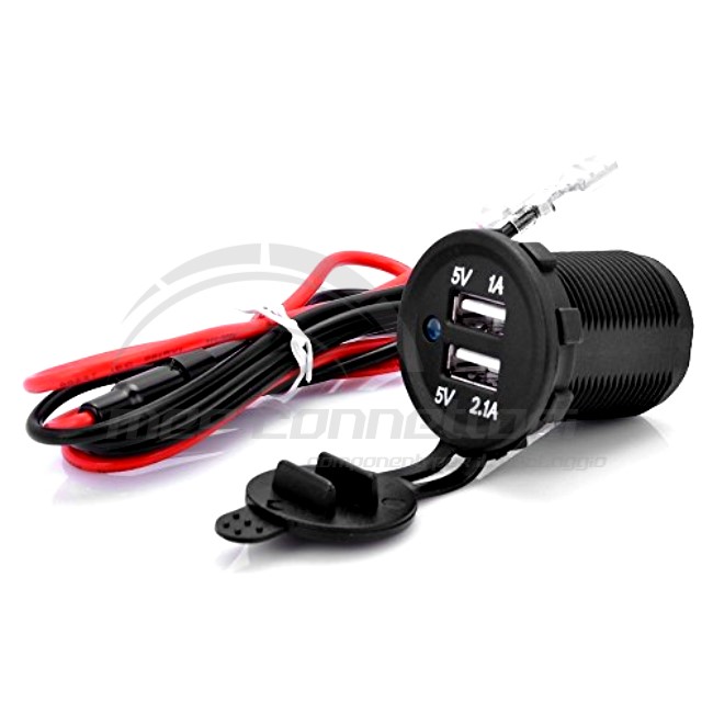 PRESA CON DOPPIA USB TYPE A 12/24V, 1+2.1A (CON CABLAGGIO)