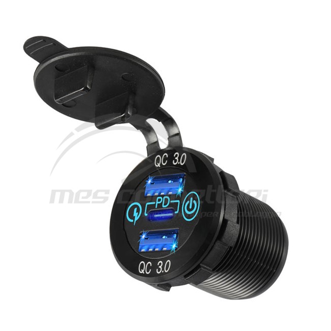 presa con doppia usb 3.0 12/24V + presa usb type c 3A led con interruttore tattile