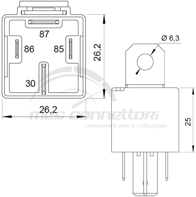 relè di potenza 24V 50A con diodo e staffa removibile